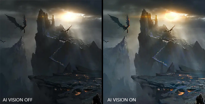 - AI Vision – The new AI Vision technology can not only reveal details in dark areas but also enhance overall brightness and saturate colors.