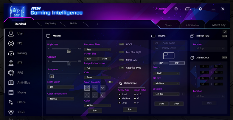 With the Gaming Intelligence APP is very easy to set up your gaming monitor. You don’t need to use the buttons on the monitor and go through all the menus, just use your Keyboard and Mouse to configure your monitor. The app even gives you hotkey options so you can switch settings between different games with ease.