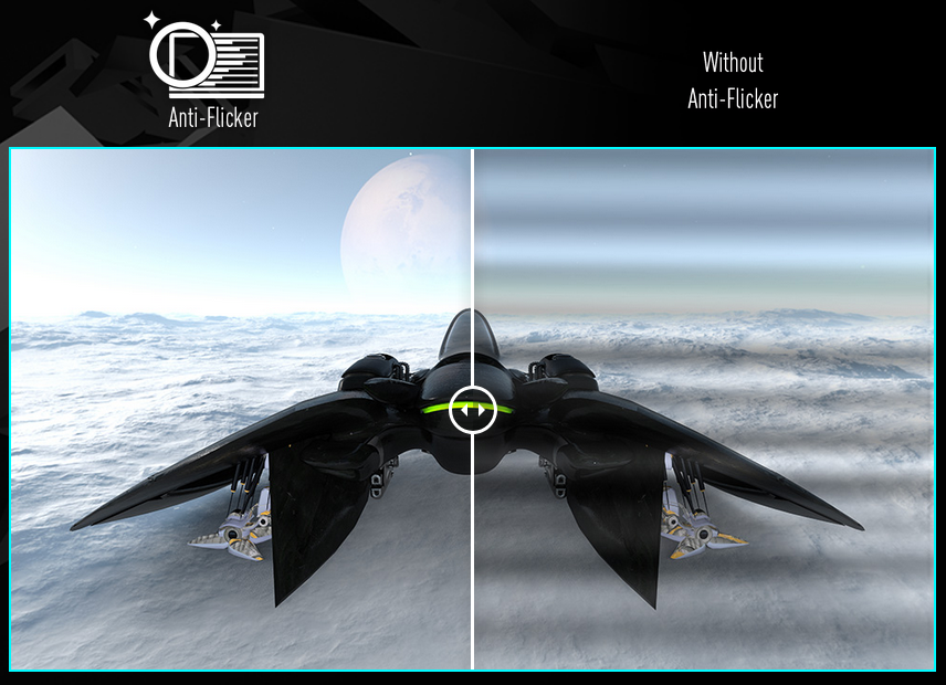 Generic monitor displays normally have a flicker-rate of about 200-times per second, which is unnoticeable to the naked eye, but can cause fatigue over time. Certificated by TÜV Rheinland, MSI Anti-Flicker technology provides a very comfortable viewing experience by reducing the amount of flicker.