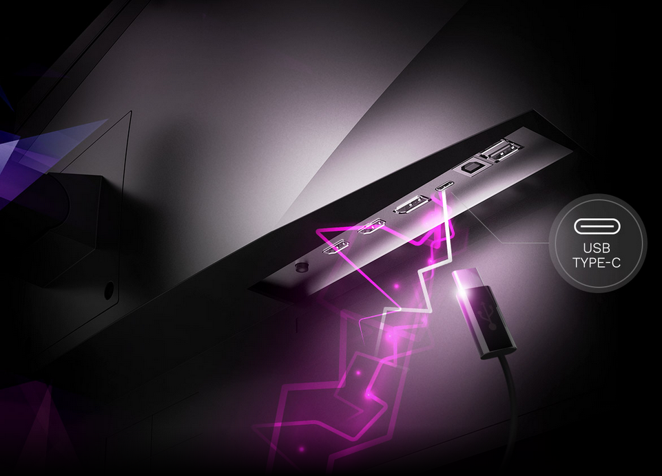 USB Type-C connection, allowing you to power your devices (up to 65W) and effortlessly connect to any devices.