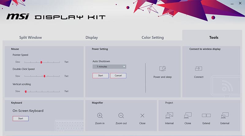 The MSI exclusive software Display Kit provides the most convenient tool, the proper display that allows you to read and enjoy the image at the same time & color mode to you while working or everyday.