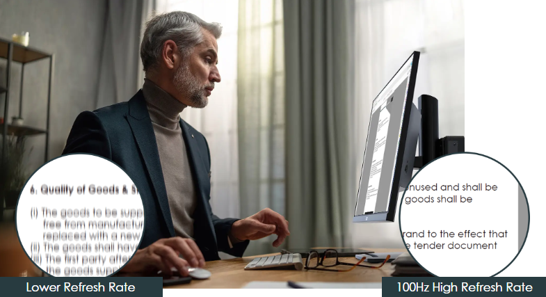 Attend the smoothest online conference call and show the perfect advertising video to customers with a 100Hz refresh rate. VESA's research shows that for 95% of users, 85Hz Refresh Rate has become a defacto standard for normal use that shows “flicker-free” images.