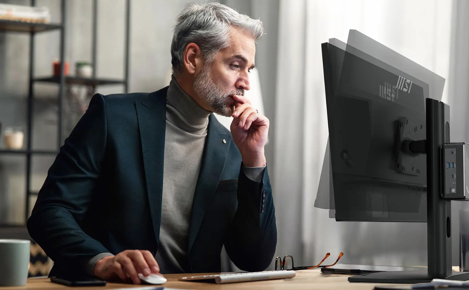 Experience the flexibility of a 4-way adjustable monitor and the convenience of a tidy desk with our mini-PC mountable stand.