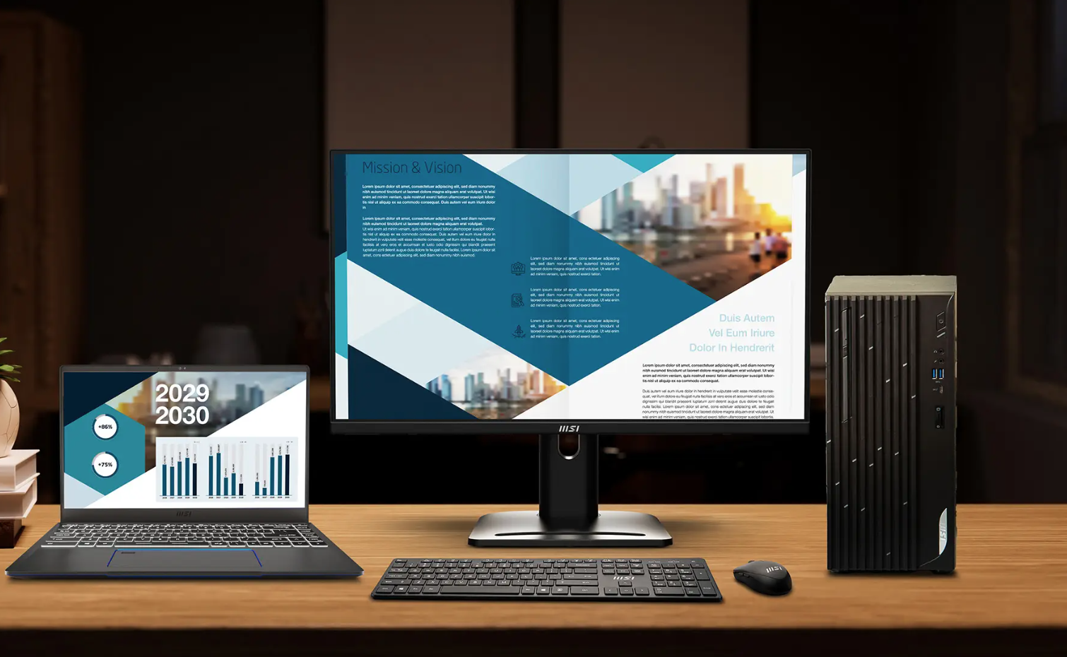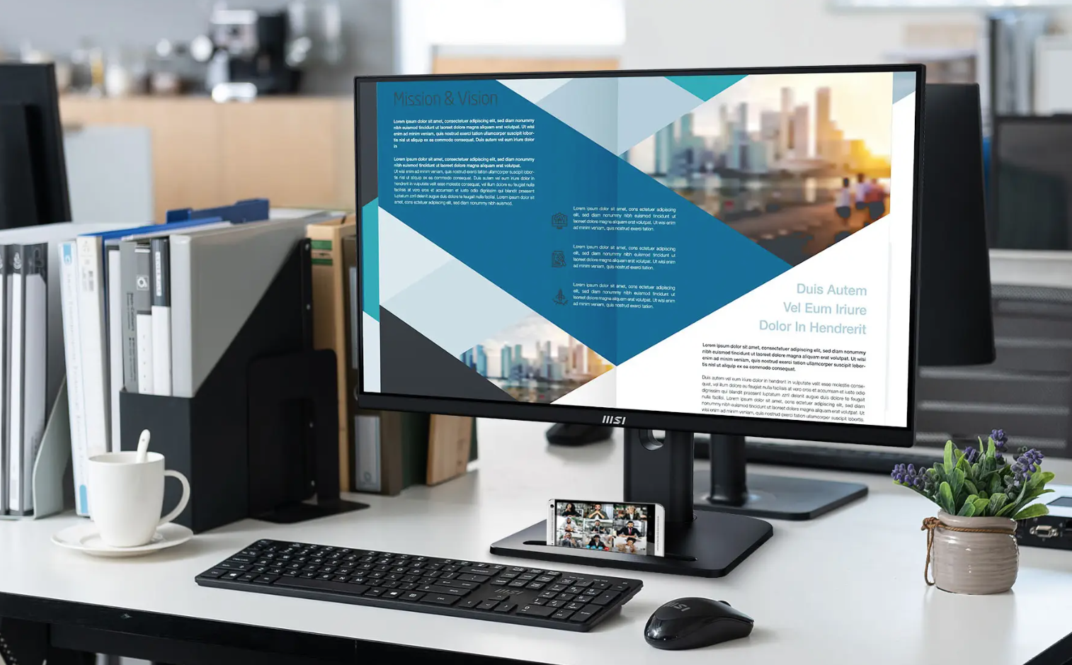 With several practical designs including standard VESA Mount, Built-in Speakers, Stand with an accessory slot and complete I/O ports, the PRO MP275QPG is the caring assistant that boosts your productivity.