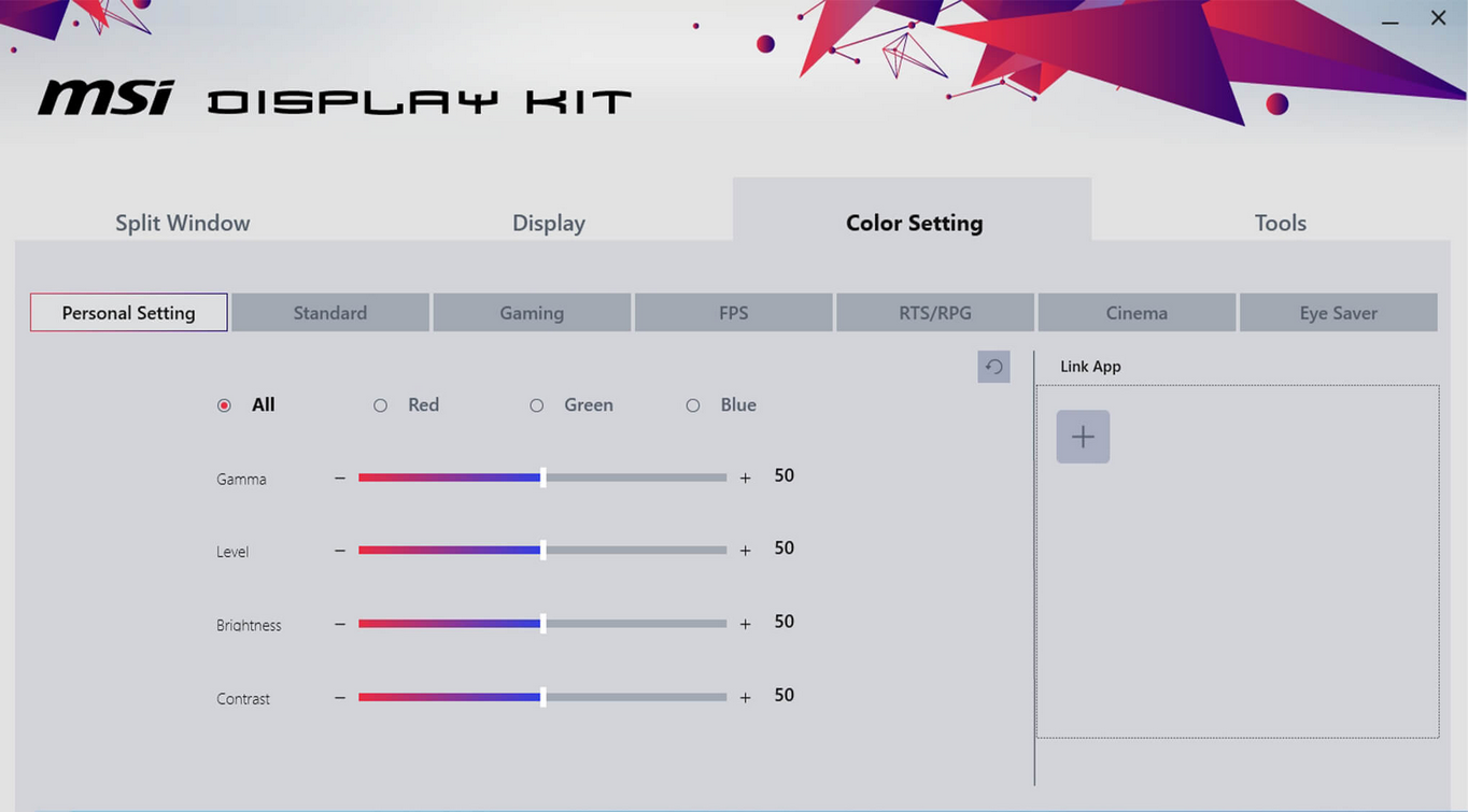 The MSI exclusive software Display Kit provides the most convenient tool, the proper display that allows you to read and enjoy the image at the same time & color mode to you while working or everyday.