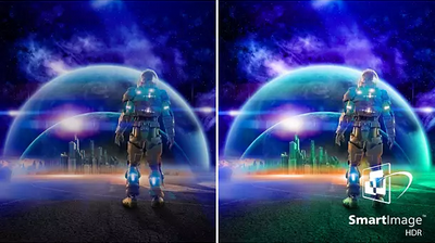 Select one of SmartImage HDR modes to best suit your needs. HDR Game: optimised for playing video games. With brighter white and darker black, the gaming scene is vivid and reveals more details, easily spot enemies hiding in the dark corners and shadows. HDR Movie: ideal for watching HDR movie. Delivers better contrast and brightness for a more realistic and immersive viewing experience. HDR Photo: enhanced red, green and blue for lively visuals. DisplayHDR: VESA DisplayHDR certified. Personal: customised settings in picture menu.