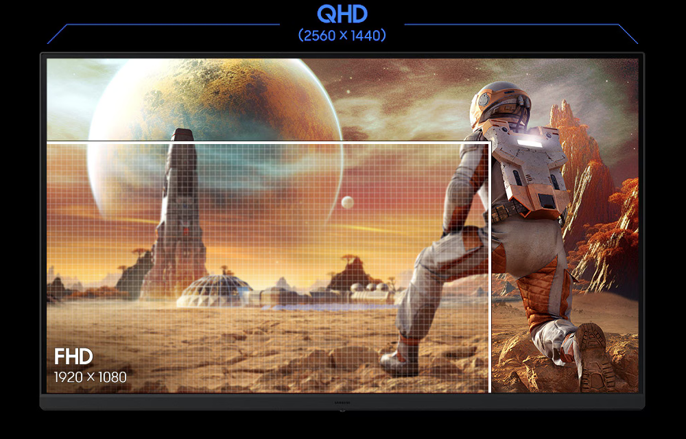 Step into a game world that's more vibrant and immersive than ever before. With 1.7 times the pixel density of Full HD (1920x1080), QHD resolution (2560x1440) boasts incredibly detailed, pin-sharp images. Now you can take in the action in more detail on the same-sized screen.