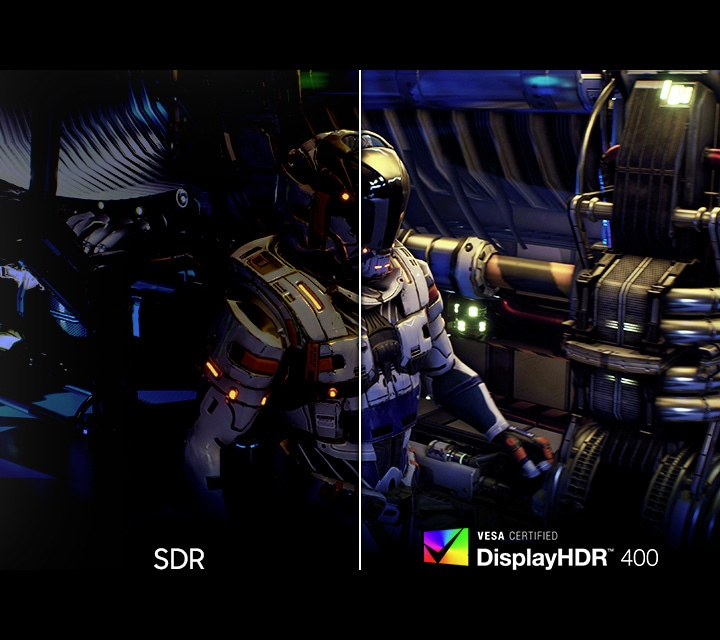 Bring your visuals to life with VESA DisplayHDR 400. By improving brightness and refining contrast, game scenes gain added depth and reveal more details in both bright and shadowed areas — delivering more immersive gameplay.