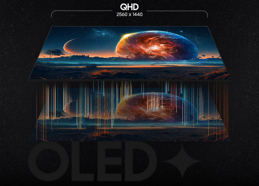 Samsung QD-OLED delivers superior brightness and a wide colour gamut to every scene, ensuring vivid detail and brilliant imagery. With QHD resolution providing 1.7 times the pixel density of Full HD, your visuals are incredibly sharp and detailed, making every moment come alive.