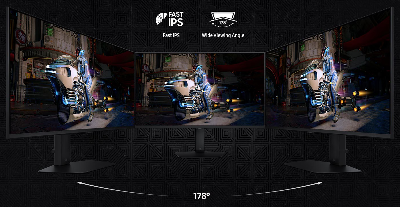 Fast IPS panel delivers clear colours and clarity from any viewpoint. With a 178º wide viewing angle, colours stay consistent and accurate from any angle. Quick response time reduces motion blur and ghosting, providing an immersive gaming experience.