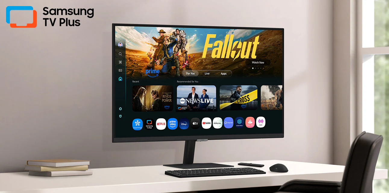 Stream content directly from your monitor, or tune into Samsung TV Plus to get live TV channels and on-demand content — all at zero cost.