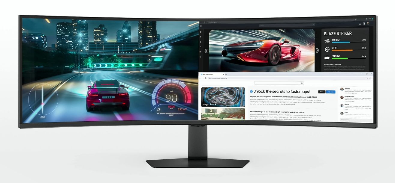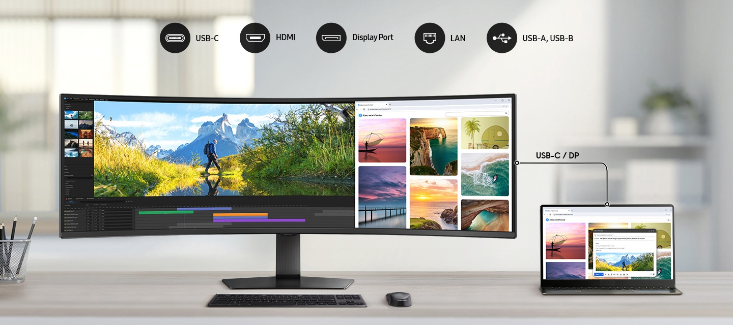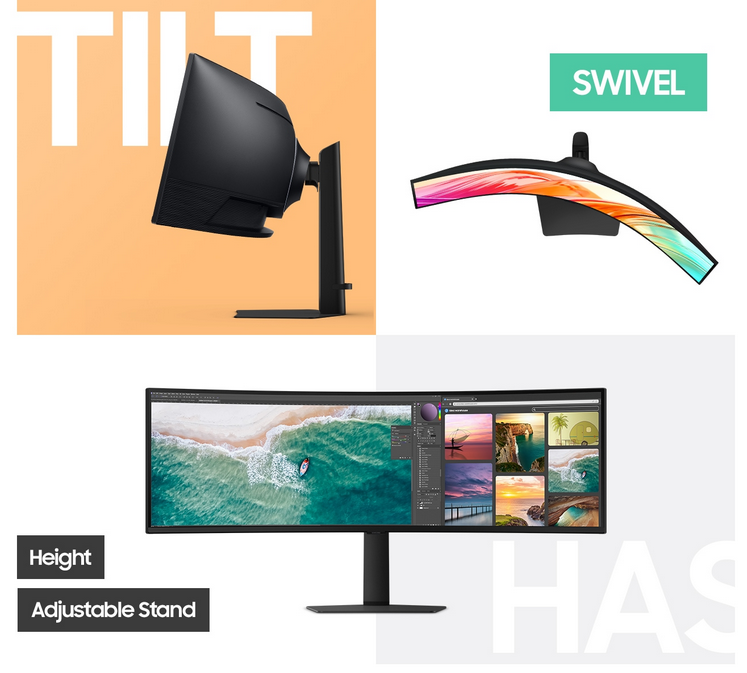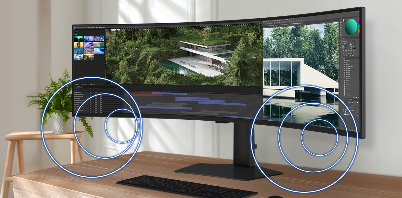 Enhance your productivity with a screen that wraps around you in a 32:9 aspect ratio. The curved monitor gives you a wider view, improving depth perception and minimising peripheral distractions, so you can stay focused on what's on the screen with more comfort.