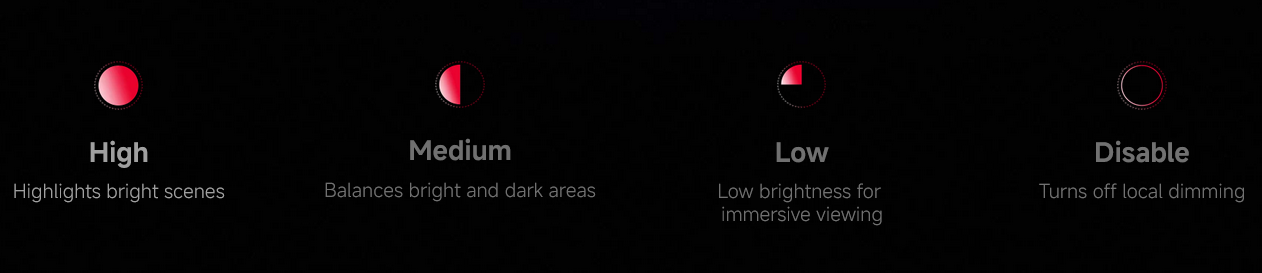 The self-developed dynamic backlight function provides multiple options for different usage scenarios.