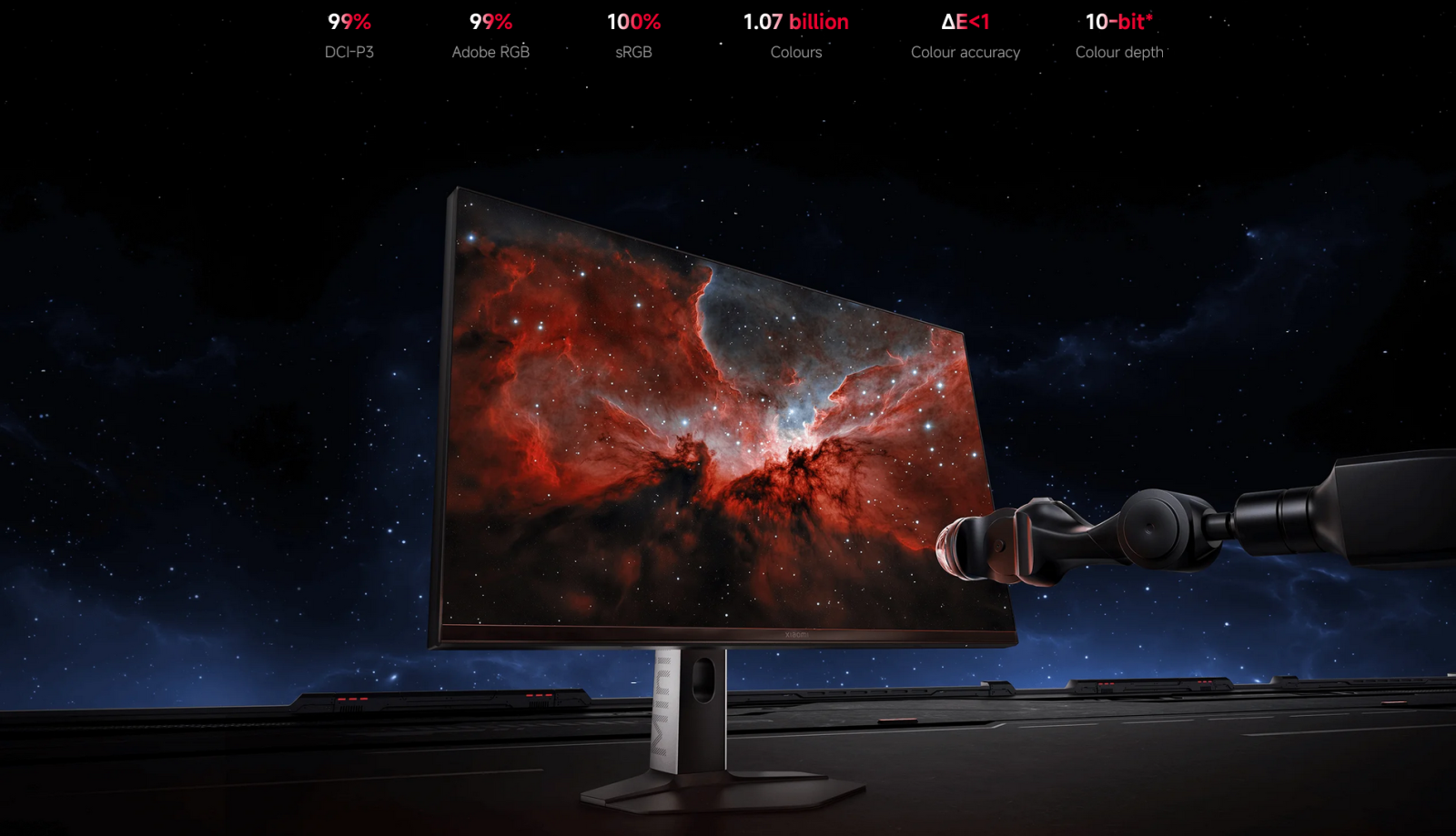 99% DCI-P3, 99% Adobe RGB and 100% sRGB wide colour gamut render frames vividly, bringing visuals to life with richness and realism. 1.07 billion colours provide smoother colour transitions for a more immersive gaming experience. Each monitor is professionally calibrated before leaving the factory, ensuring professional-grade ∆E<1 colour accuracy, so you can enjoy lifelike visuals at home.