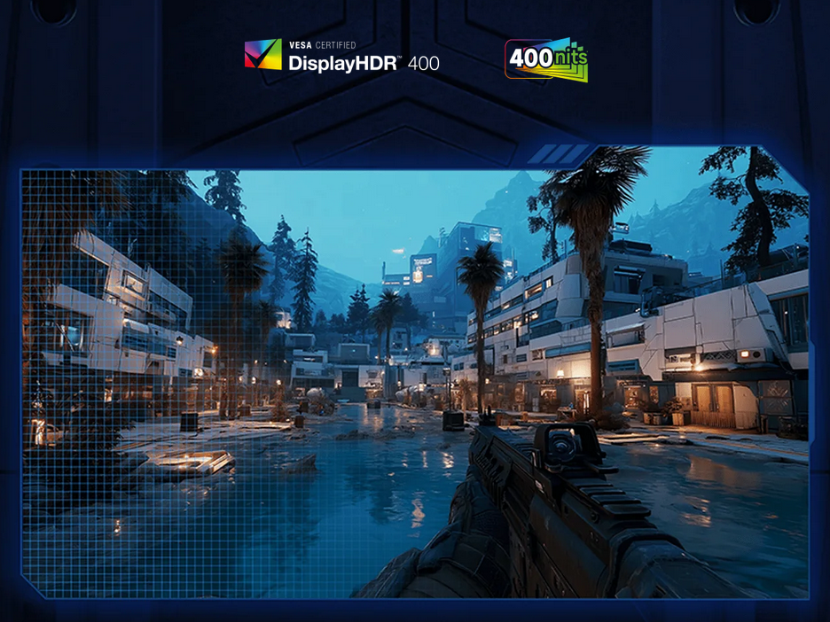 HDR 400 delivers a peak brightness of 400nits. Deep shadows and bright highlights
