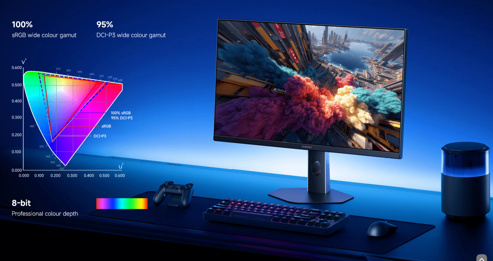 8-bit professional colour depth delivers rich gradients for smooth, natural transitions. The combination of 100% sRGB and 95% DCI-P3 wide colour gamut ensures an immersive and exceptional visual experience.