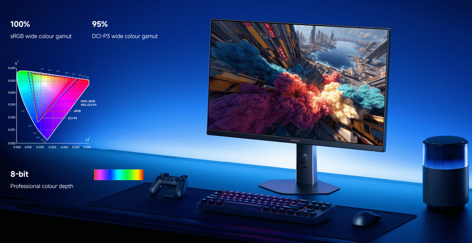 8-bit professional colour depth delivers rich gradients for smooth, natural transitions. The combination of 100% sRGB and 95% DCI-P3 wide colour gamut ensures an immersive and exceptional visual experience.