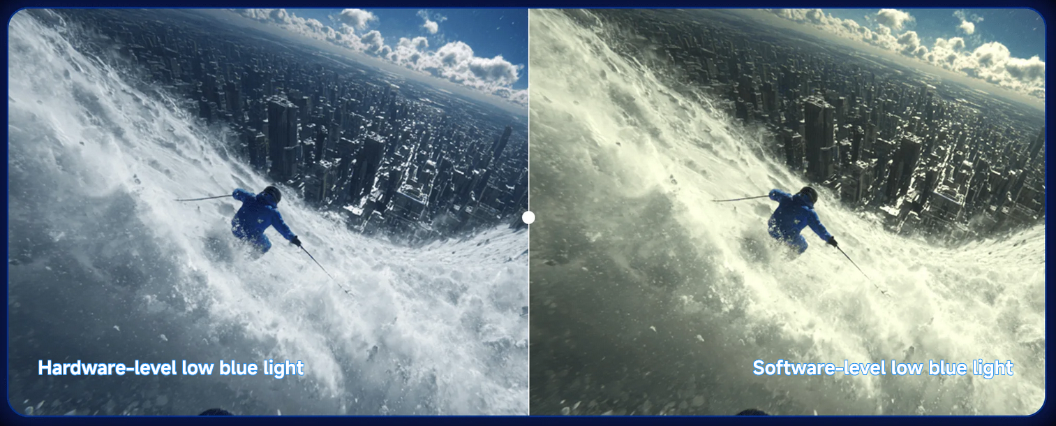 Using TÜV-certified hardware-level low blue light technology, it reduces 50% of harmful blue light while protecting eyes and keeping colours accurate.