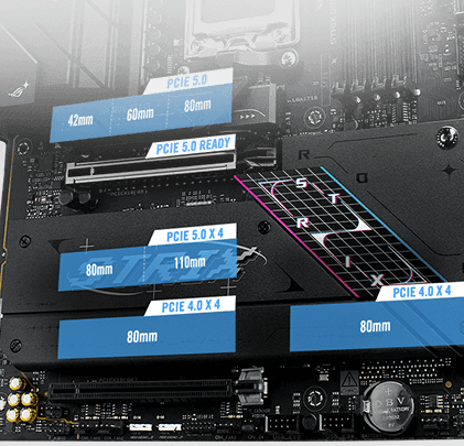 Fully embracing the new standard, the Strix B850-F offers end-to-end PCIe 5.0 support.