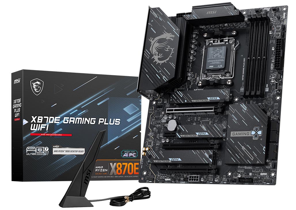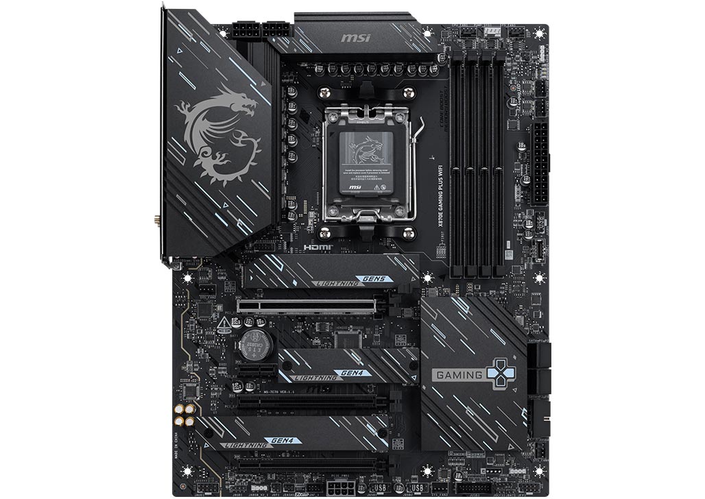 X870 GAMING PLUS WIFI is designed with durable components to provide great gaming experience. Designed with Wi-Fi 7 and 5G LAN, high-speed USB4, PCIe 5.0 solutions, Supplemental PCIe Power and exclusive EZ DIY features, it's ready for 24/7 non-stop gaming of AMD Ryzen™ 9000 series processors.