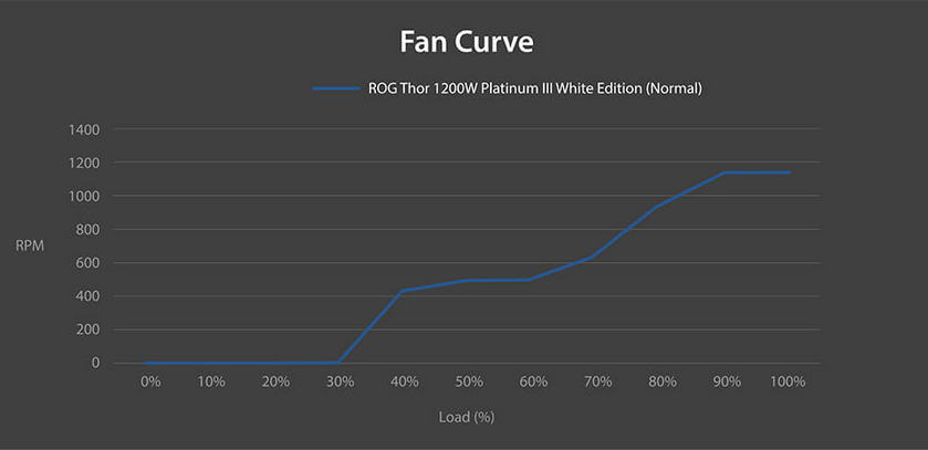 To reduce noise output, the PWM-controlled fan shuts off entirely when the PSU load is at 30% or below.