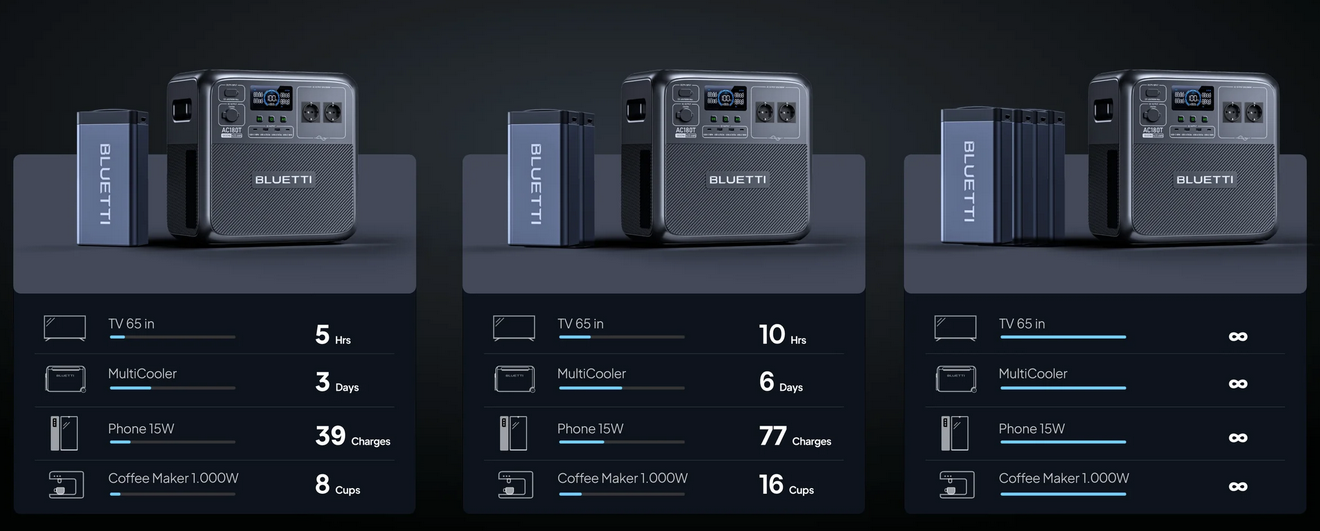 For week-long road trips or an off-grid lifestyle, BLUETTI's first ecosystem keeps your devices powered, food fresh, and drinks ice cold, all in an efficient and sustainable way. The interchangeable B70 battery fits both the AC180T and the Multicooler, offering extreme flexibility and convenience.