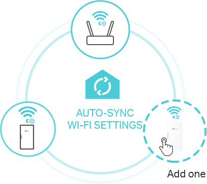 Instantly copies your network name and password from your router for easy setup. Automatically applies any setting changes across the network. Your existing Wi-Fi settings will synchronize to the new extender instantly.