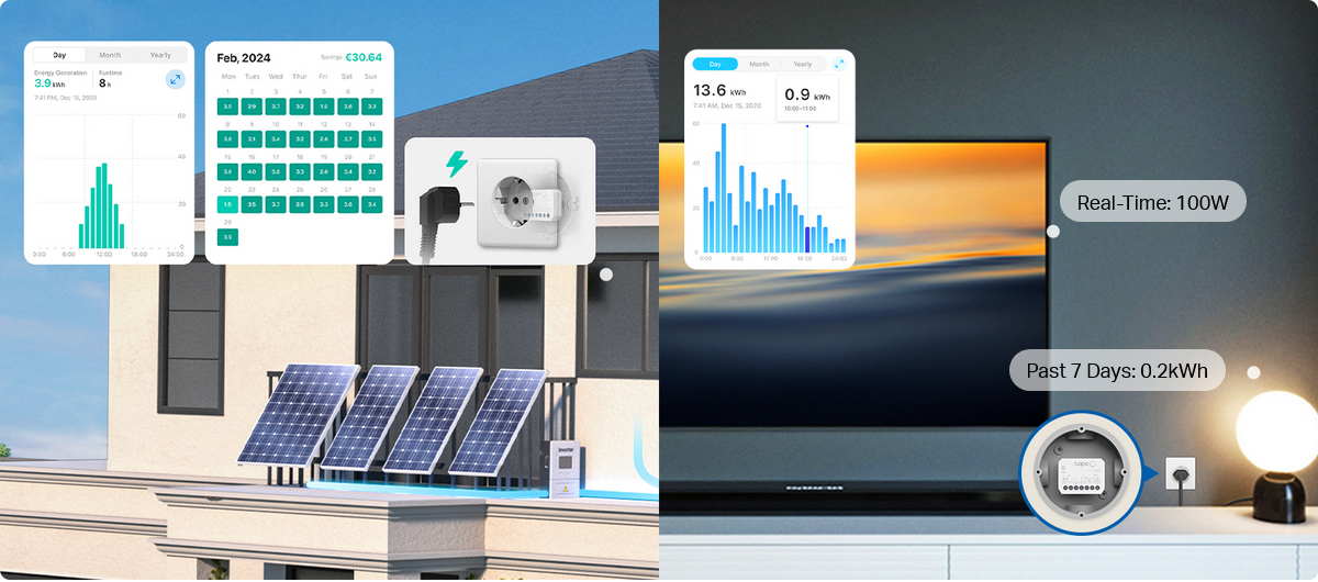- Track Energy Generation and Usage - Tapo S110E features advanced hardware that automatically detects the current direction, offering a true plug-and-play experience without the need for manual setup.