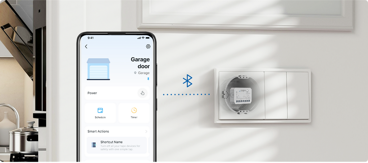 Use Bluetooth to easily onboard the smart switch module with the Tapo app.