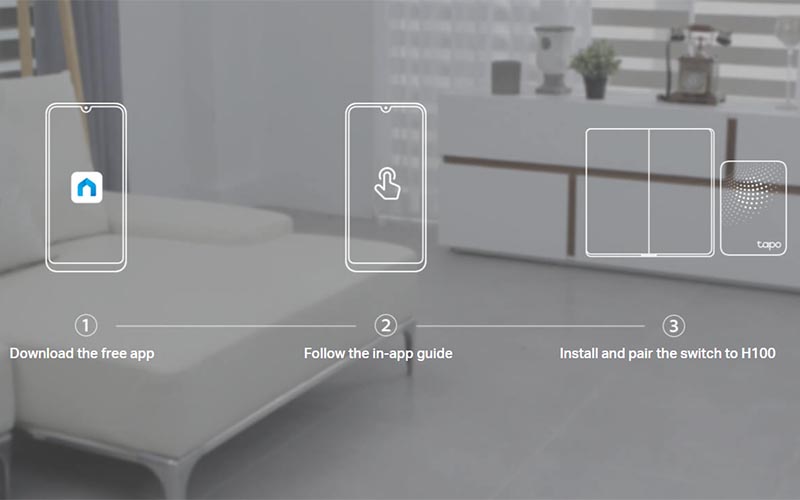 Once you've installed the Tapo app and followed its in-app guide, replace your traditional switch and pair with a Tapo Hub (H100) to begin using your smart switch.