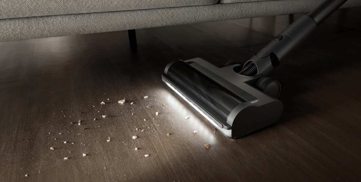 The electric brush bar is suitable for multiple floor types including floorboards, tiles and carpets. Its built-in LED light reveals hidden dust in dark corners for a more effective clean.