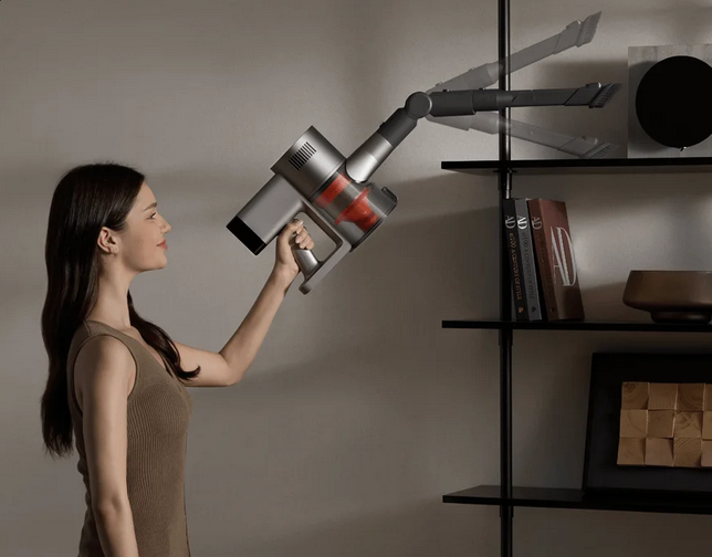 With the 2-in-1 brush nozzle, the suction head angle adjusts freely for more flexible cleaning of picture frames, cabinets, windowsills and other surfaces.