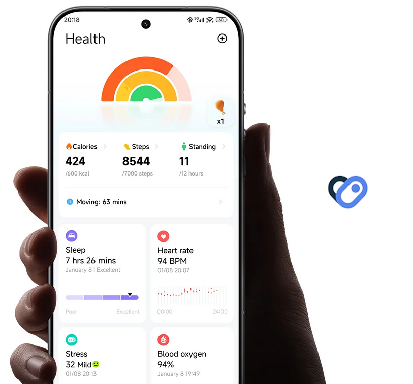 Combines blood oxygen and respiratory data for more accurate, comprehensive analysis and helps identify sleep states based on phone status.