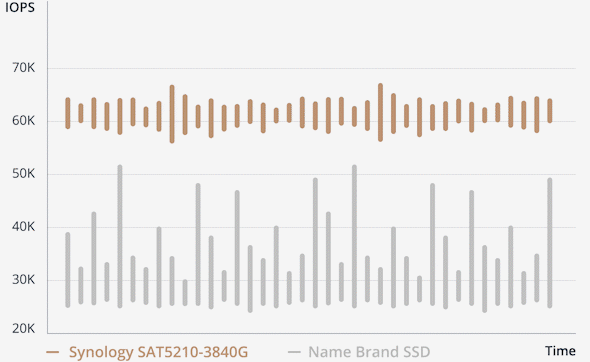 Engineered for demanding environments such as for online transaction processing (OLTP) databases and virtualization deployments, Synology SAT5200 Series drives deliver consistently high performance.