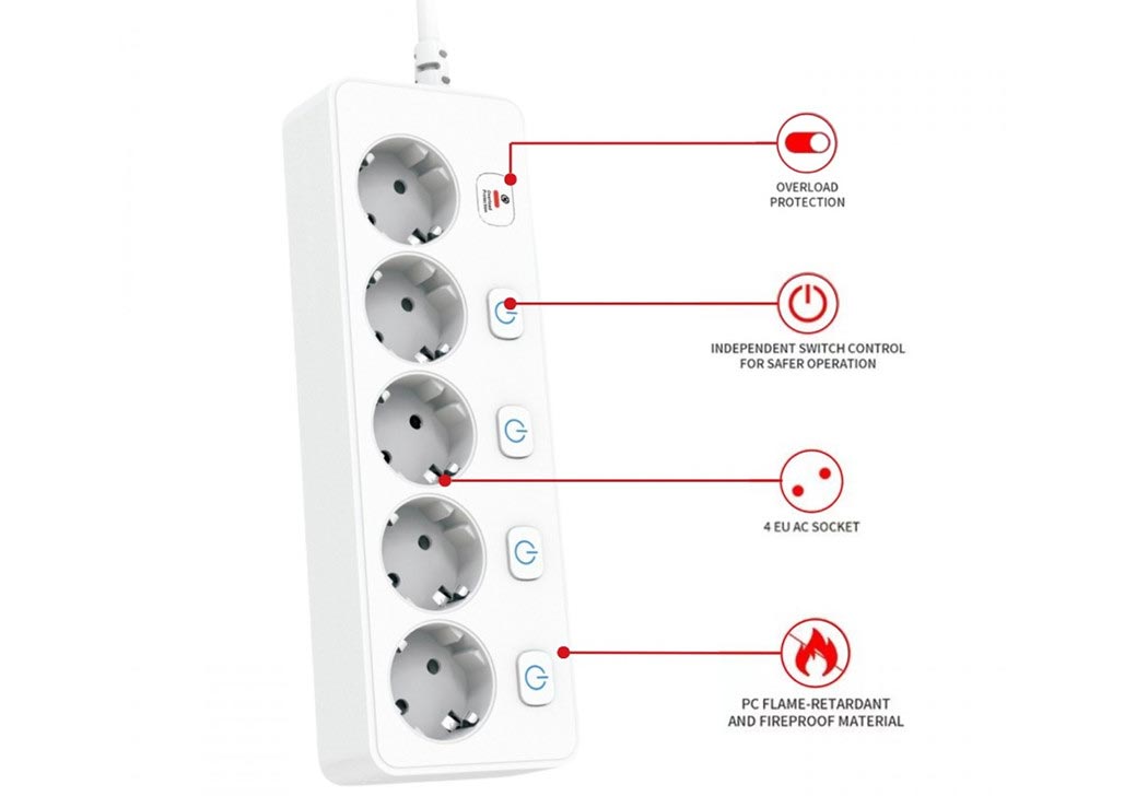 | Μοντέλο | Πολύπριζο 5 θέσεων (Schuko) με ατομικούς διακόπτες - White |