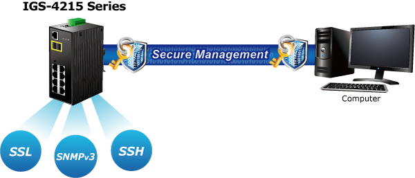 For efficient management, the IGS-4215-4P4T is equipped with web, Telnet and SNMP management interfaces. With the built-in web-based management interface, the IGS-4215-4P4T offers an easy-to-use, platform-independent management and configuration facility. By supporting the standard SNMP, the switch can be managed via any standard management software. For text-based management, the switch can be accessed via Telnet. Moreover, the IGS-4215-4P4T offers secure remote management by supporting SSH, SSL and SNMP v3 connections which encrypt the packet content at each session.