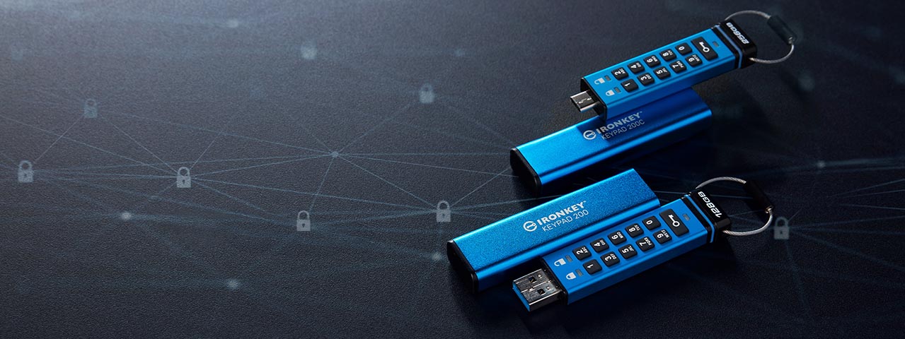 The Kingston IronKey™ Keypad 200 series are OS-independent, hardware-encrypted USB Type-A and USB Type-C® drives with an alphanumeric keypad for easy-to-use PIN access.
