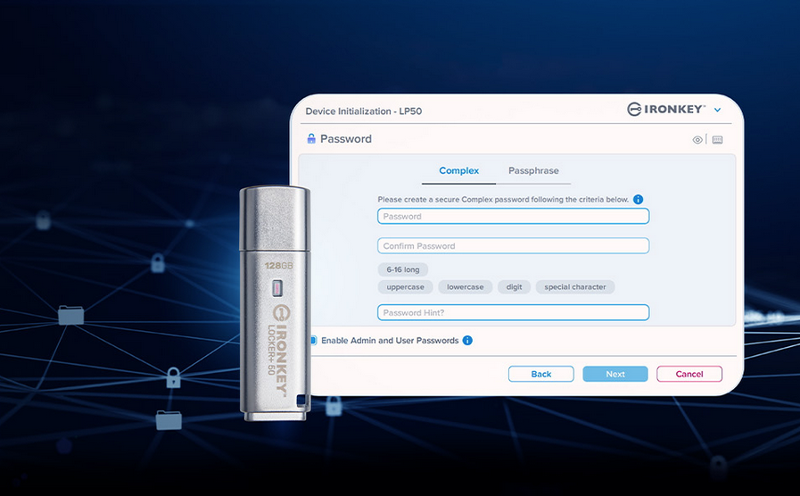 Kingston IronKey™ Locker+ 50 USB Flash drives provide consumer-grade security with AES hardware-encryption in XTS mode, including safeguards against BadUSB with digitally-signed firmware and Brute Force password attacks. LP50 is also TAA compliant.
