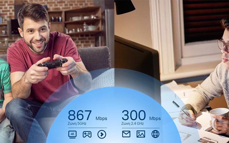 - Εξαιρετικά γρήγορη ταχύτητα - Χρησιμοποιήστε πλήρως το δίκτυό σας με ταχύτητες Wi-Fi έως 1167 Mbps (867 Mbps στη ζώνη 5 GHz και 300 Mbps στη ζώνη 2,4 GHz)