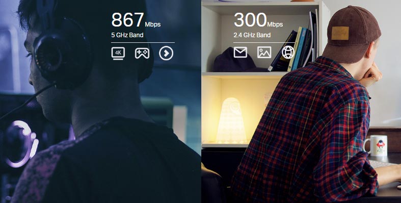 - High Speed Wi-Fi – Up to 1200 Mbps Wi-Fi speeds (867 Mbps on 5 GHz band and 300 Mpbs on 2.4 GHz band)