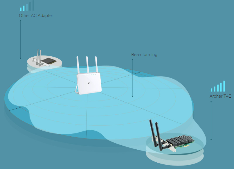 Beamforming technology smartly focuses Wi-Fi signals towards connected devices for stable connections and boosted range.